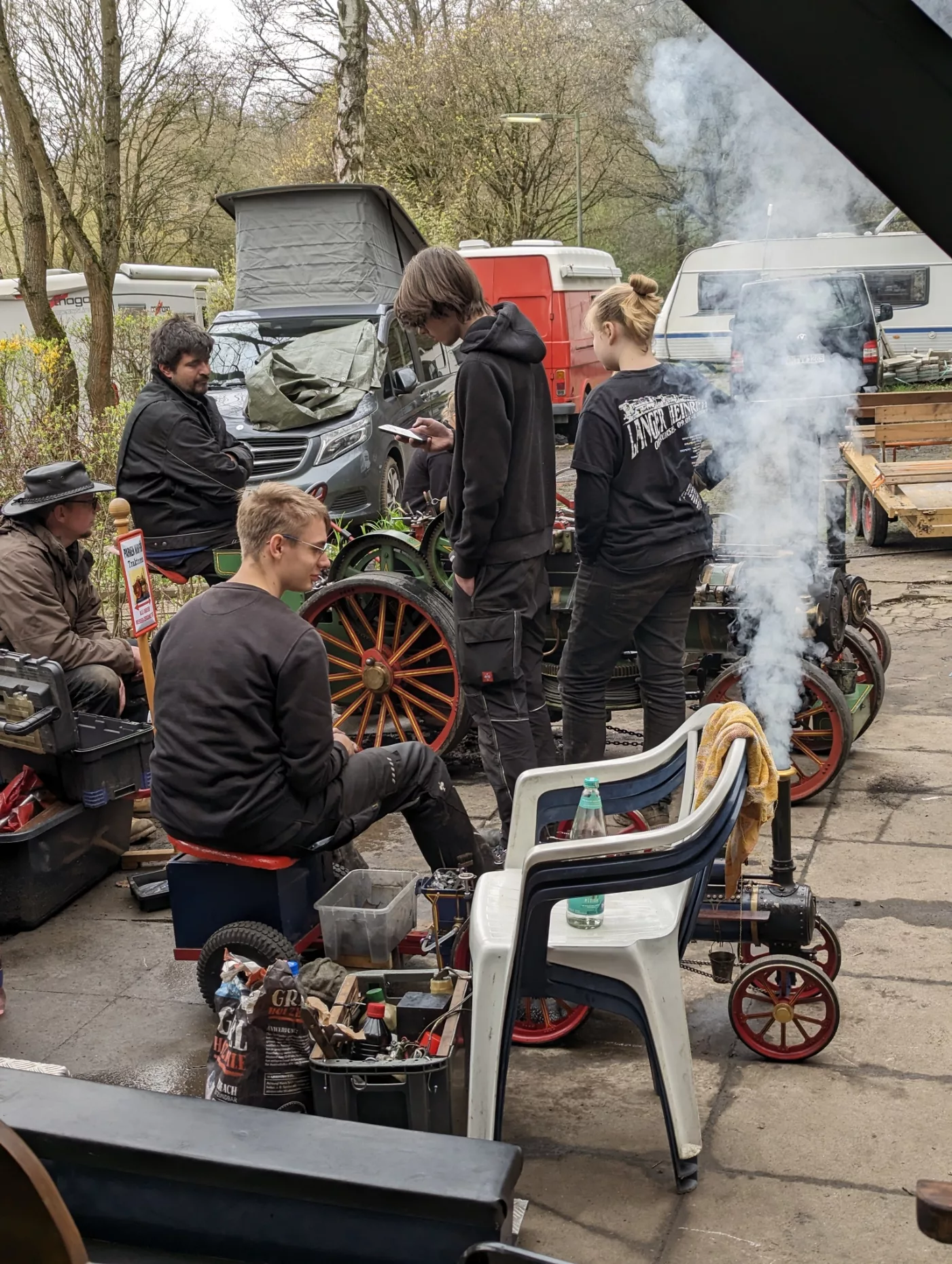 Wie sich das für angehende Dampfbahner gehört, sind natürlich alle in schwarzen Klamotten.