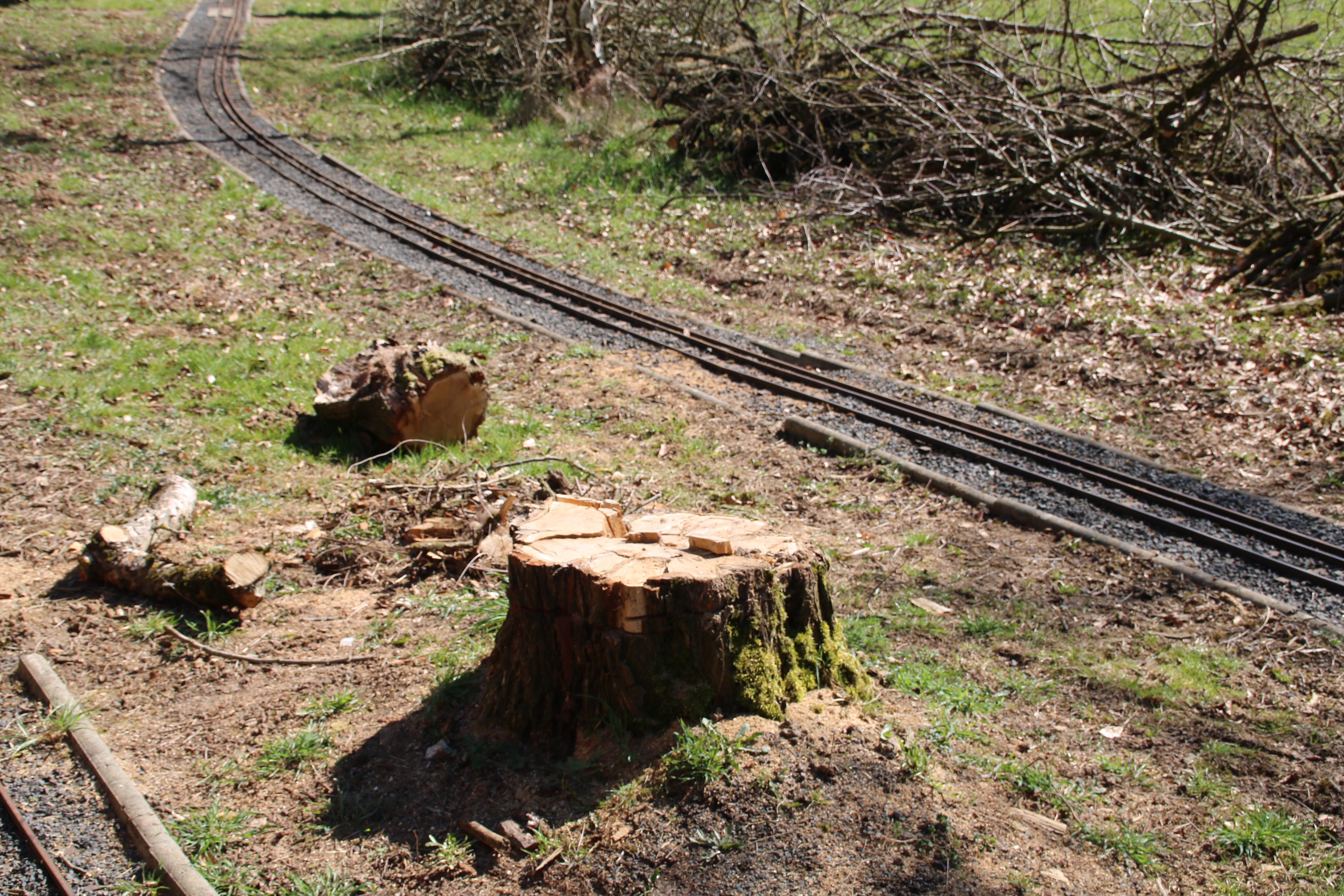 Gleichzeitig erobert draußen die Natur die Gleise zurück, wir hoffen, das, wenn wir wieder Fahrbetrieb machen können und dürfen, nicht schon ganze Bäume im Gleis stehen: